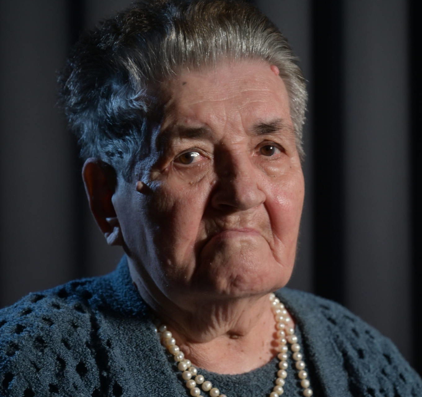 „Die Männer sind zuerst auf den Friedhof gefahren und erschossen worden. Dann kamen sie zurück und haben Frauen und Kinder verladen. Auf diesem Wagen waren meine Mutter, mein zehnjähriger Bruder und meine zweijährige Schwester, meine Tante mit vier Kindern und zwei weitere Tanten. Und dann stieg meine Großmutter auf den Wagen und [einer der Täter] hat sie dann von dem Wagen weggeschubst, denn sie war eine Polin. Da hat meine Mutter mich aus dem Wagen gehoben und der Großmutter gegeben. Und sie sagte: Mutter, wenn du überlebst, wird sie dir wenigstens bleiben. Und mein Bruder wollte aus dem Wagen nicht runter, denn er war älter und schon klüger. Und sagte, dass wenn die Mama stürbe, wolle er mit ihr zusammen sterben. Dann haben sie die anderen zum Friedhof gefahren.“
